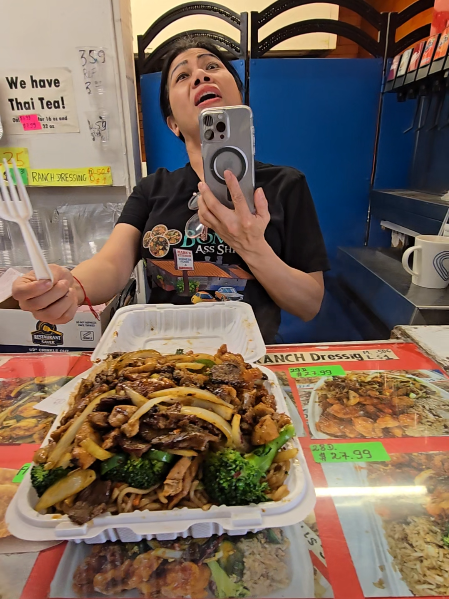 The genuine shock and awe on her face while holding an absolutely massive plate of food creates that "wait, is that real?" moment. People love watching someone encounter abundance they didn't expect, especially when the reaction is unfiltered and real.