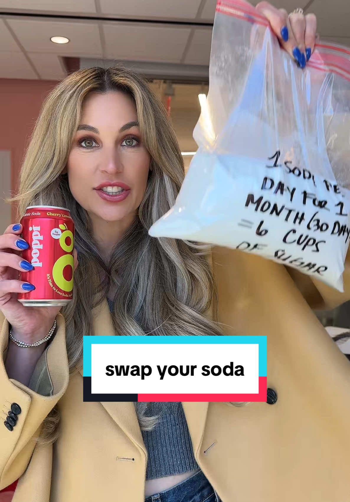 People respond to a simple health comparison that makes the alternative look ridiculous. Showing 6 cups of sugar in 30 days hits harder than abstract nutritional claims. The visual math does the selling.